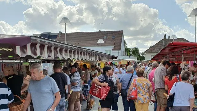 Dimanche 1er septembre, le marché de Courteille a retrouvé la place du Point-du-Jour. © Ouest-France