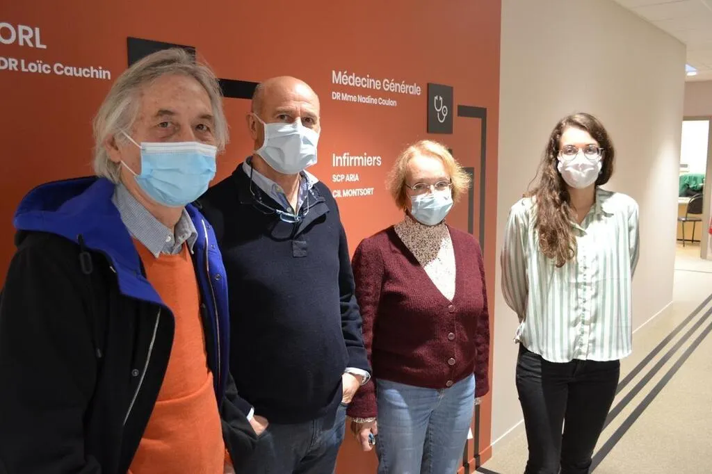 Eric Anger, président de l’association pour une communauté professionnelle territoriale de santé Orne-Sarthe, et les docteurs Cachin, Coulon et Julien ont fêté l’inauguration du nouveau pôle de santé libéral et ambulatoire de Perseigne-Montsort. © Ouest-France