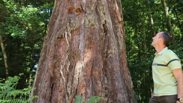 Ce conifère est vieux de 140 à 150 ans. Il mesure 39 m, avec un diamètre de 1,86 m. « On appelle le séquoia, l’arbre du boxeur, à cause de son écorce un peu molle », précise Lionel Huchette. Les boxeurs américains l’utiliseraient pour s’entraîner sans se blesser.