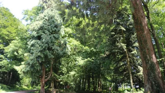 D’un côté et de l’autre des routes, au carrefour des Arcis, un thuya et un séquoia rivalisent de majesté (parcelles 351 et 329). Le thuya tient son nom du grec ancien, en référence à son bois parfumé. Il mesure 29 m, avec un diamètre de 0,85 m. Le séquoia est tout à fait impressionnant. Vieux de 140 à 150 ans, il mesure 38 m, avec un diamètre de 1,69 m
