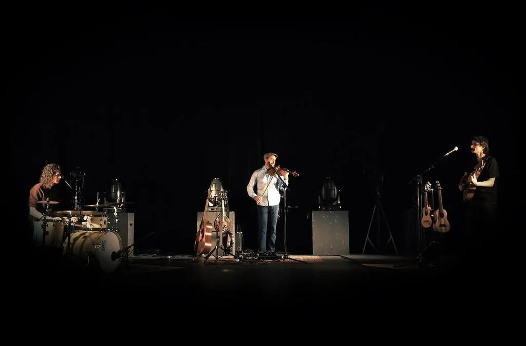 Benjamin Agostini à la batterie, Vincent DO au violon et Christophe Grisard à la guitare. © DR