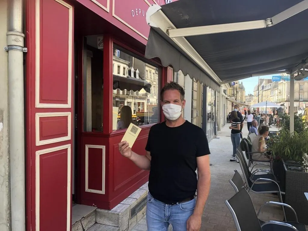 Au restaurant Chez Fano d’Alençon (Orne), Stéphane Chevallier a créé un modèle de carte d’identité avec au verso, le QR code sanitaire. OUEST-FRANCE