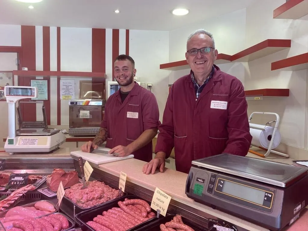 Après 50 ans de métier, le boucher de Montsort, à Alençon, passe le relais à son jeune salarié... |