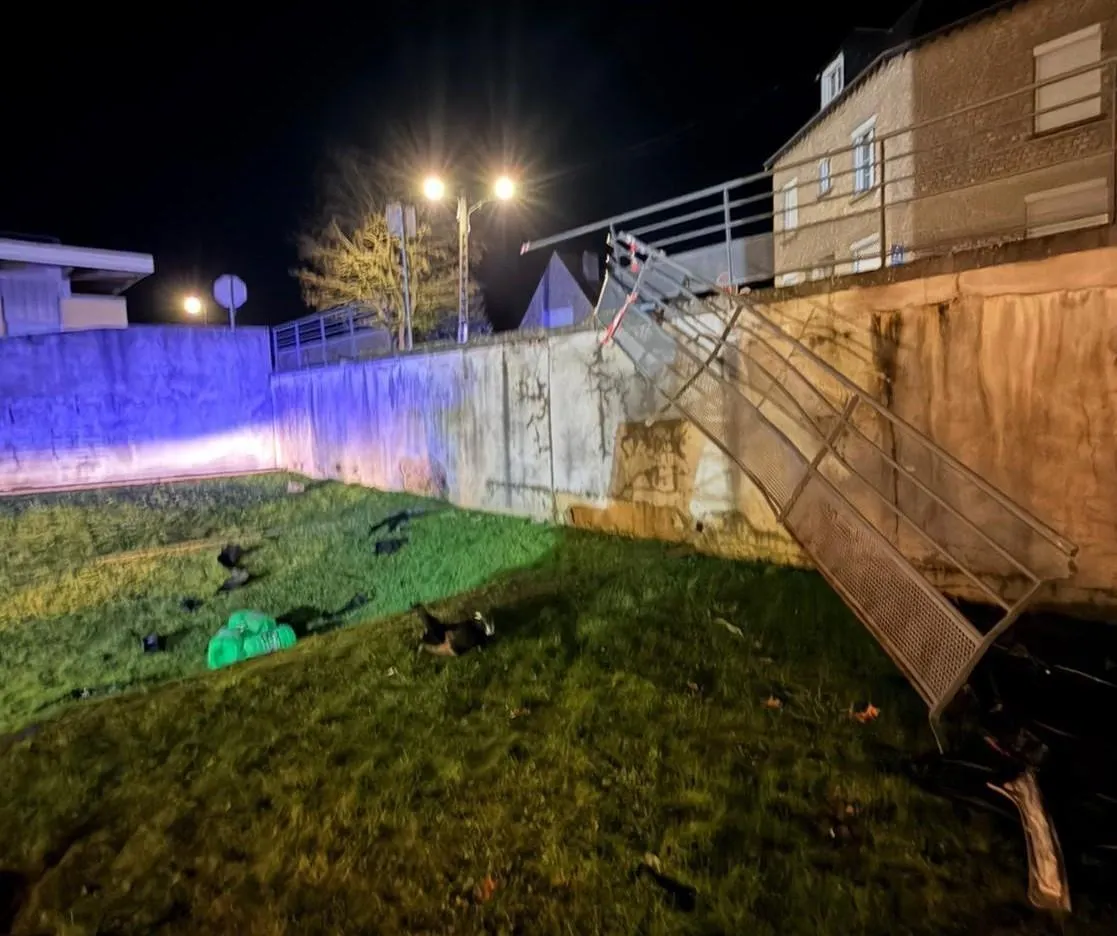 La voiture et ses cinq occupants ont fait une chute de deux mètres en contrebas, à Alençon (Orne), dans la nuit du vendredi 6 au samedi 7 février 2026 © Ouest-France