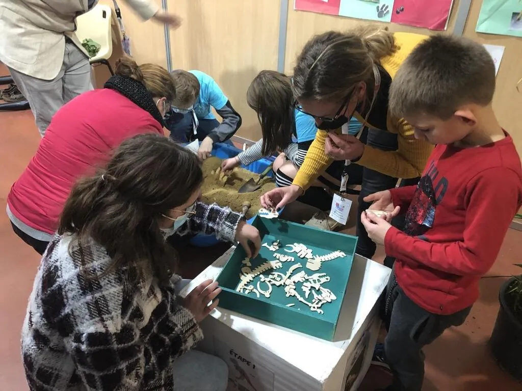 Première étape : reconstituer un squelette de dinosaure. © Ouest-France