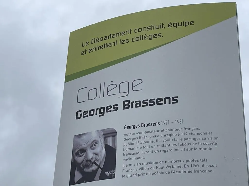 Au collège Georges-Brassens à Écouché (Orne), les élèves sont choyés au niveau auditif : plutôt qu’une stridente sonnerie pour annoncer le début et la fin des cours, les élèves ont droit aux premières notes de la chanson Les copains d’abord, le titre phare de l’artiste dont l’établissement porte le nom.