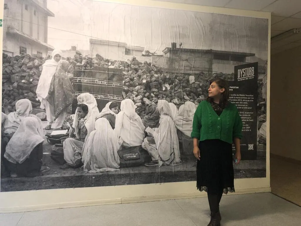 Encadrés par Élise Duffay, professeure documentaliste, accompagnée de Sara Farid et Michael Bunel, photojournaliste membre de l’association Dysturb, les élèves ont passé une journée axée sur la situation au Pakistan, le photojournalisme et les fausses informations. « Grâce à ces rencontres, les élèves prennent conscience de la situation dans les autres pays », explique Sara Farid, qui a elle-même choisi cette photographie, évocatrice de la situation des jeunes femmes au Pakistan.
