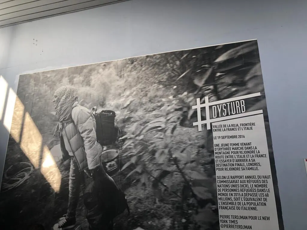 Elle représente une jeune femme venant d’Érythrée qui marche dans la forêt pour rejoindre la route qui mène de l’Italie à la France. Londres est sa destination finale.