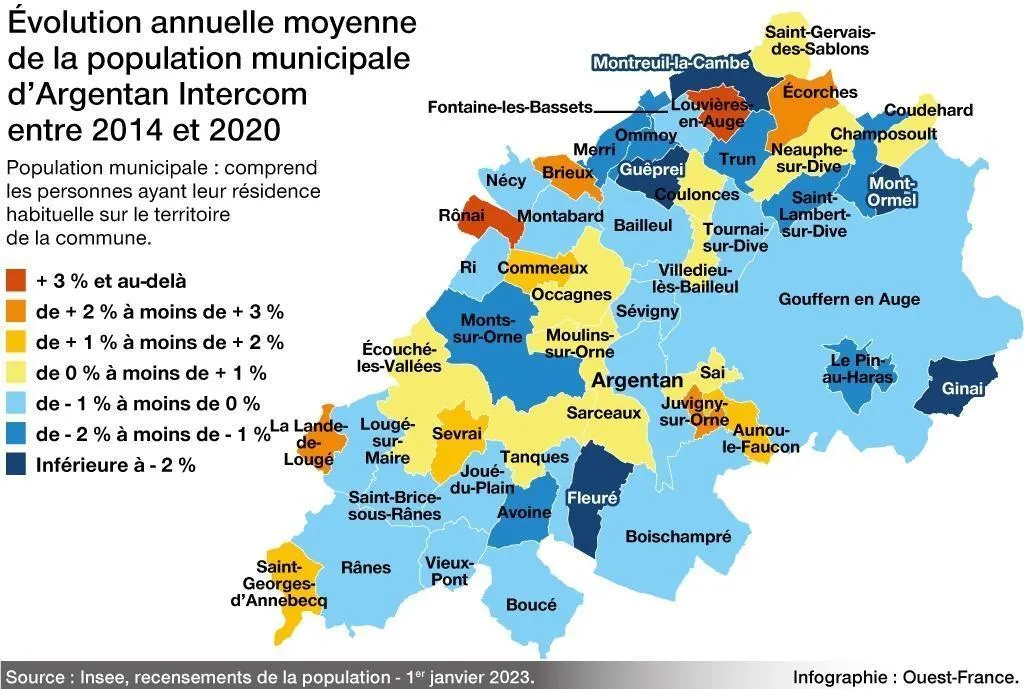 En cette fin décembre 2022, l’Institut national de la statistique et des études économiques (Insee) vient de publier les chiffres de l’évolution de la démographie entre 2014 et 2020. Un moyen d’observer si le territoire d’Argentan (Orne) et de son intercommunalité fait face à une baisse démographique,