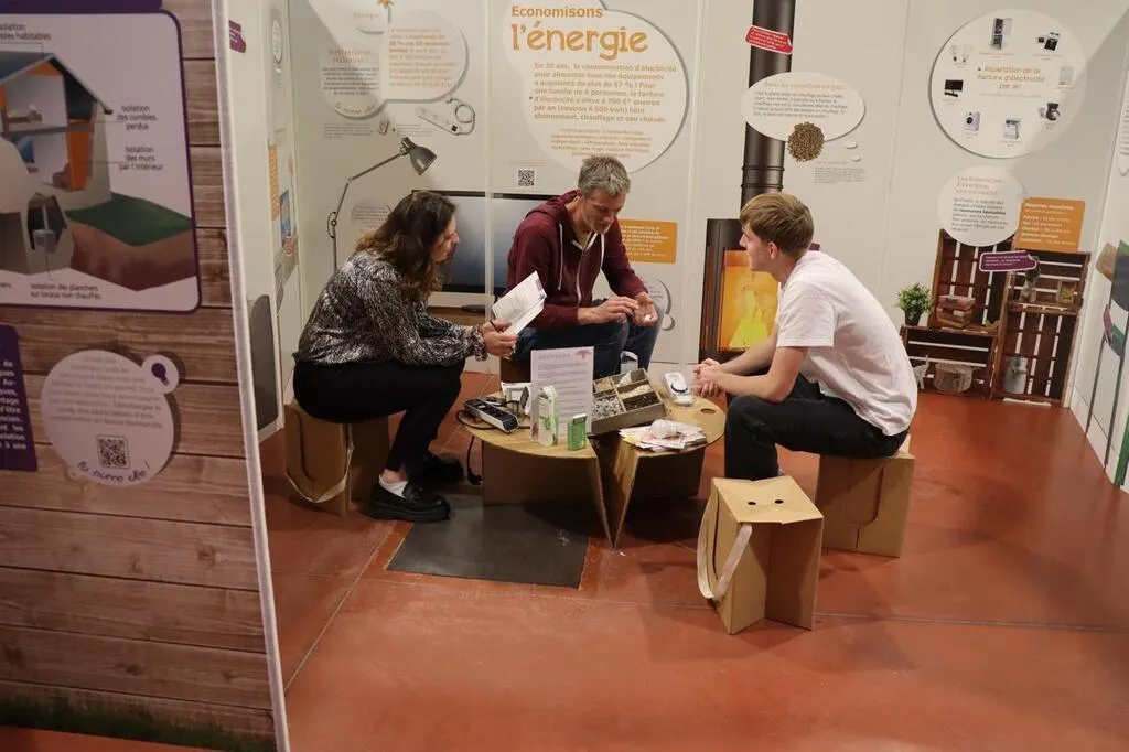 « Il s’agit au départ d’un vrai appartement qui a été aménagé pour sensibiliser le public aux économies d’énergie et aux accidents domestiques, à Caen, résume Johan Herman, animateur au CPIE (Centre permanent d’initiatives pour l’environnement). Devant le succès rencontré, le CPIE Vallée de l’Orne, situé à Caen, en a fait réaliser un mobile. On y retrouve les pièces principales d’un appartement : la cuisine, la salle de bains, la chambre… dans lesquelles les thématiques sont abordées par des photos et des pastilles de couleur. » On peut y lire des astuces pour augmenter la qualité de l’air ou qu’une douche de dix minutes équivaut à un bain, et n’est donc pas économe.