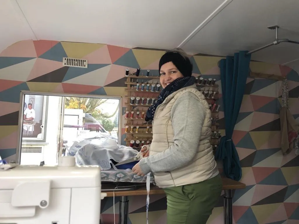 Bien au chaud dans sa petite roulotte grise, juste à côté du camion de Marie-Catherine Douchin, vendeuse de café et de thé, sur le marché d’Argentan (Orne), Maguy Pierre s’attelle derrière sa machine à coudre, à faire les retouches sur ...