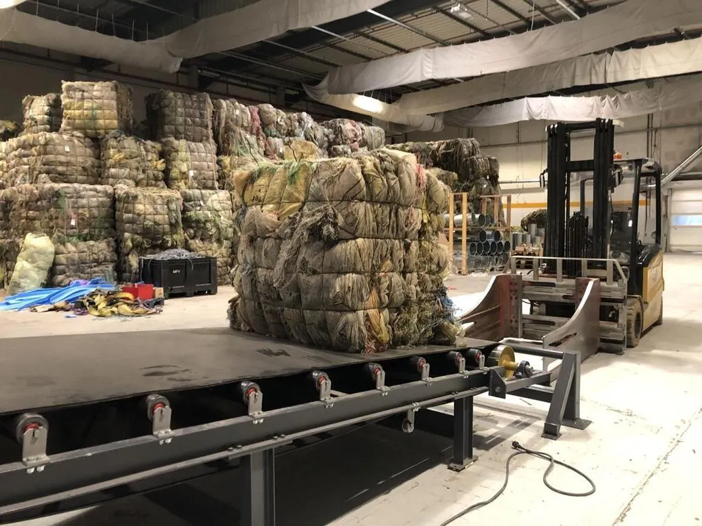 Un tapis roulant, fabriqué par deux salariés de RecyOuest, a été récemment mis en place pour y déposer les filets. © Ouest-France