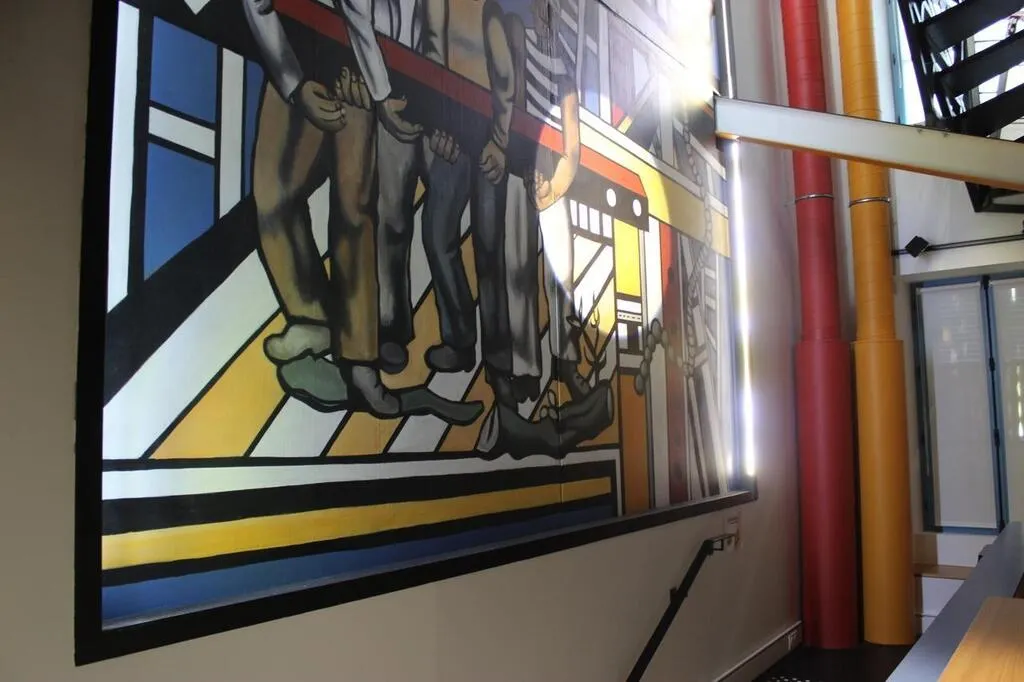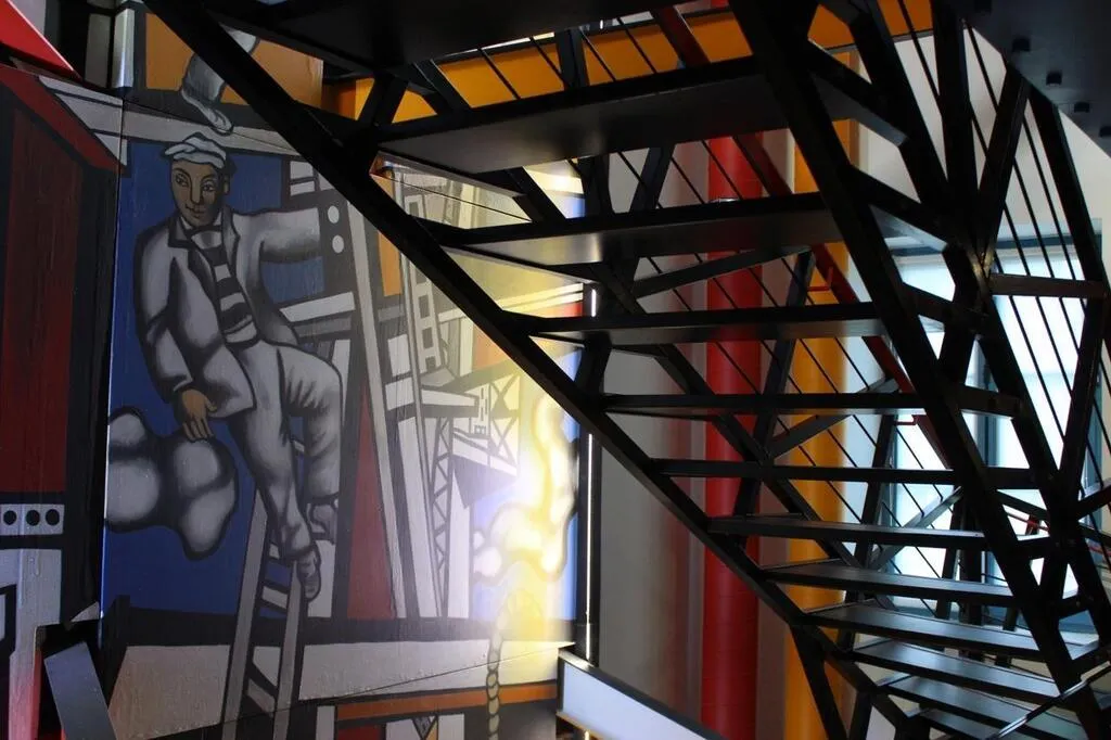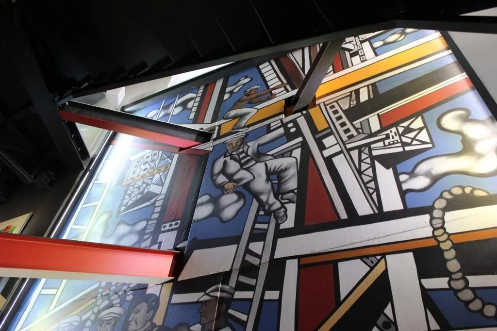 Déployé sur quatre niveaux, le musée trouve son unité grâce à sa fresque monumentale (elle mesure 6 m sur 4 m). Il s’agit d’une reproduction de l’œuvre emblématique de Fernand Léger, Les Constructeurs. Les dimensions du tableau ont été doublées pour mettre en valeur le plafond cathédrale et pour remettre les personnages à l’échelle humaine. Au fur et à mesure que le visiteur gravit les escaliers, il découvre de nouveaux détails de la peinture.