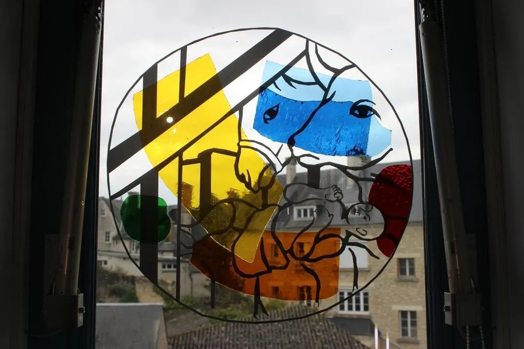 Au dernier étage, on retrouve des vitraux, parmi lesquels celui de Cathy van Hollebeke. Elle a reproduit le travail de Fernand Léger autour de « La Nativité ». Ouest-France