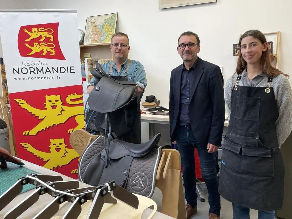 Jean-Sébastien Vallée, 52 ans, exerce le métier de sellier depuis près de trente ans dont dix-huit passés au cœur de l’atelier selle de la maison Hermès à Paris. Désormais installé à son compte, à Rémalard-en-Perche, il a reçu le soutien financier de la Région.