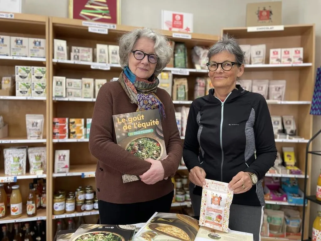 Marie-Claude Foureau, présidente d’Artisans du monde Alençon, et Françoise Dutertre, bénévole et membre du conseil d’administration, dans la boutique de la rue Maréchal-de-Lattre-de-Tassigny. © Ouest-France