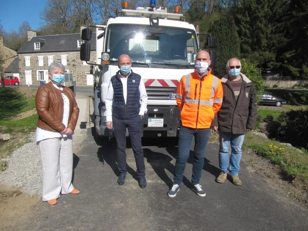 Le test a été effectué en présence des élus. De gauche à droite : Marie-Françoise Frouel, conseillère départementale de l’Orne ; Alain Lange, maire d’Athis-Val-de-Rouvre ; Michel Lelarge, d’Ingénierie 61 ; Didier Loisel, adjoint à la mairie de Montilly-sur-Noireau. © Ouest-France