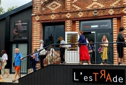 Après celle du jardin, la visite de la galerie l’Estrade durera environ trente-cinq minutes. L’Estrade, bâtiment patrimonial bien connu des Athisiens, ancien patronage, transformé en un lieu d’art actuel par ses propriétaires, accueille expositions et événements culturels, qui y sont menés par l’association Vaertigo.