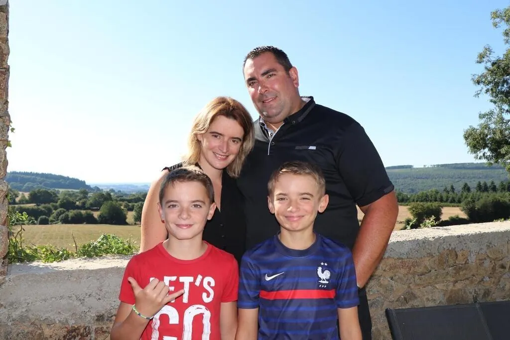 La famille Camus-Denais a ouvert la chambre d’hôtes « Au fer à cheval » il y a quatre ans dans leur maison de Gandelain (Orne). De gauche à droite : Émilie et Romain, derrière leurs fils jumeaux Noé et Enzo. © Ouest-France