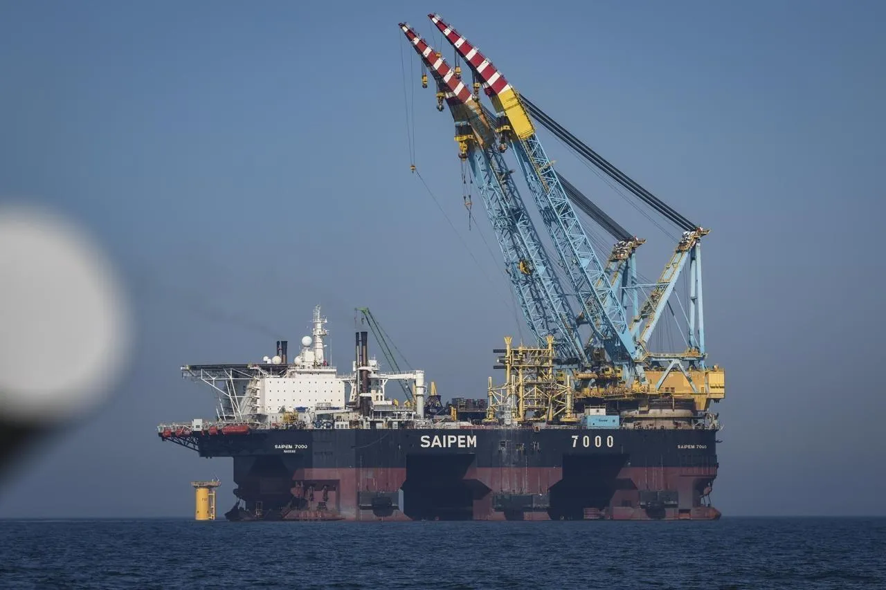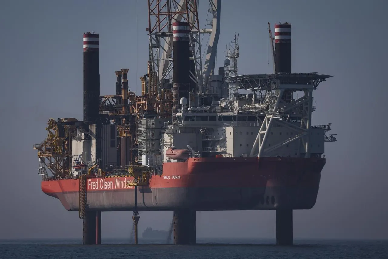 Après deux ans de retard, la mise en service du parc éolien en mer du Calvados est prévue pour la fin d’année 2027. Au large de Ouistreham, à 15 km des côtes, deux navires sont à l’œuvre pour installer les fondations des 64 futures éoliennes.