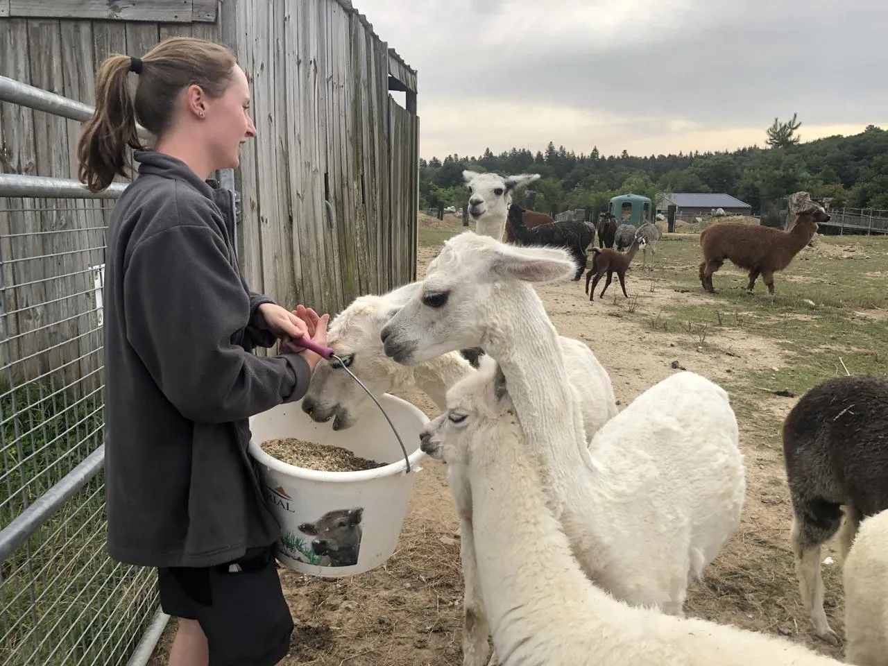La soigneuse Ophély nous guide toute la matinée pour nourrir les animaux et nettoyer les enclos du parc animalier d’Écouves (Orne), ici les alpagas et nandous. © Ouest-France
