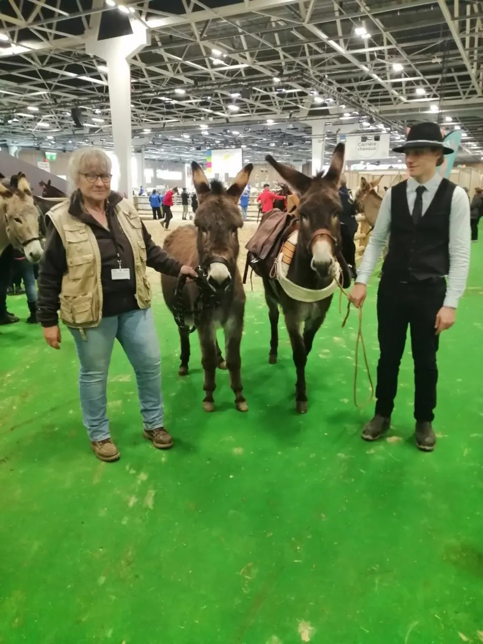 Sylvie Cheyrezy et Julian Bergeon encadrent Laurette du val d’Elle et Léonidas du val d’Elle, au Salon de l’agriculture 2025. © CVEN.