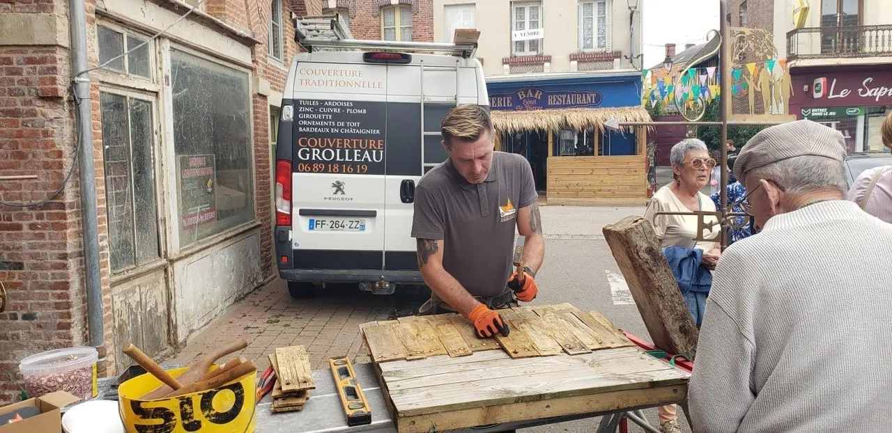 La démonstration d’essentage en bardeaux par Simon Grolleau et l’exposition d’outils anciens, devant les halles, ont retenu l’attention du public. Une visite guidée et commentée dans les rues du Sap, a permis d’aller à la découverte des différents types d’essentages.
