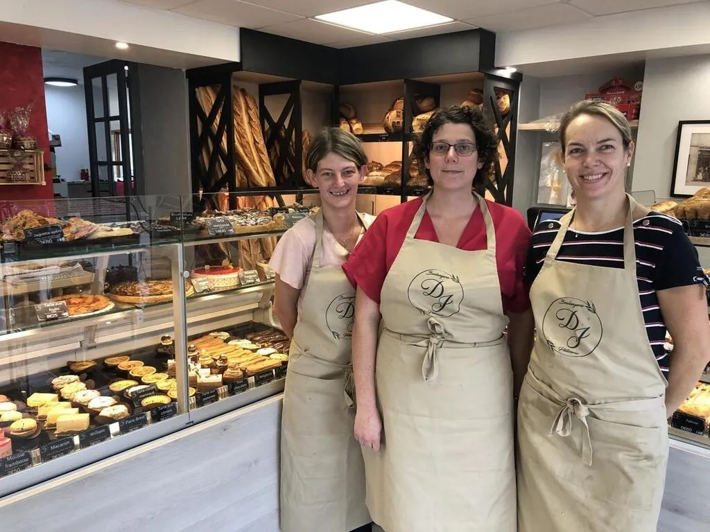 Dorine Desvigne (au centre), gérante de la nouvelle boulangerie d’Écouché-les-Vallées, entourée de Sophie et Aurélie, vendeuses. © Ouest-France