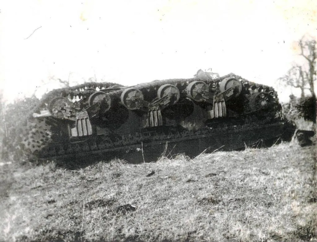 Un char Sherman britannique du Sherwood Rangers Yeomanry qui fut détruit lors des combats, le 16 août 1944, à Berjou, dans l’Orne. © MUSÉE DE BERJOU archives