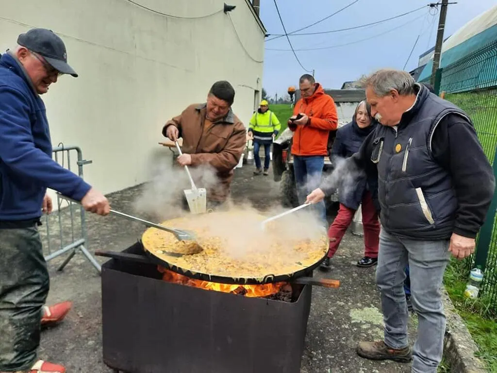 2024-12 Tinchebray centre de secours. Plusieurs omelettes seront cuites successivement dans la poêle géante et au feu de bois. © Archives Ouest-France