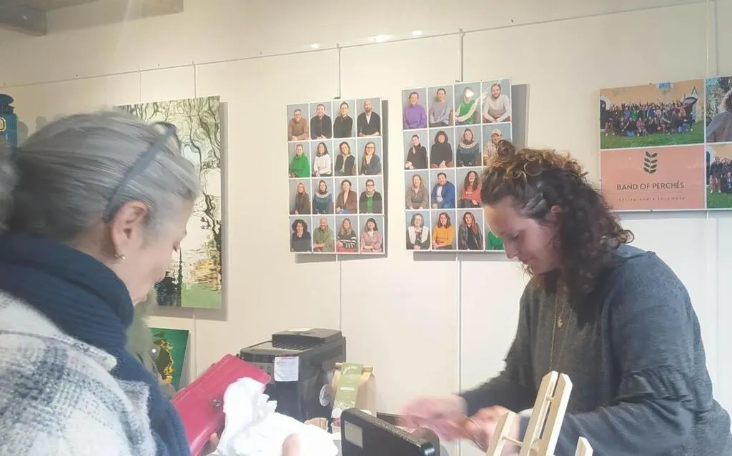 Alice Erb Malet et en arrière-plan, les photos des quatre-vingts adhérents de l’association lors du vernissage des boutiques Bop up. © Ouest-France