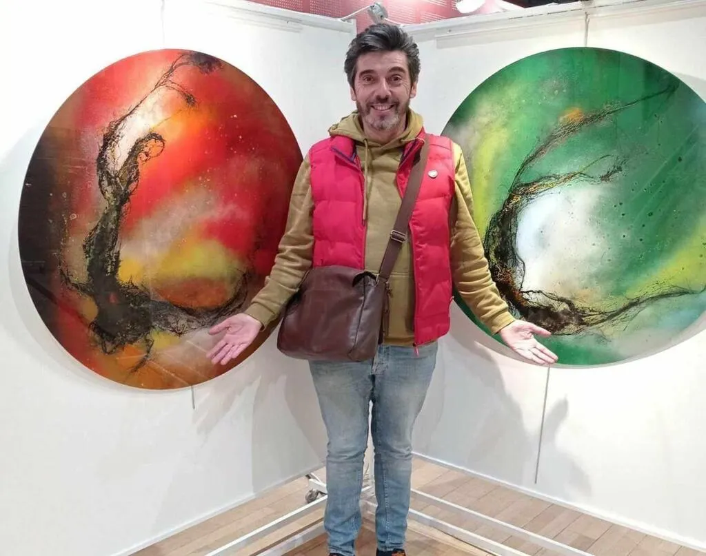 , comme il le dit lui-même, expose pour la deuxième fois au Grenier à sel et y présente la suite de sa série ronde Nymphose.  Terme biologique signifiant la transformation, la mue d’un état d’origine à un autre chez un insecte, et dans lequel le spectateur peut retrouver des thèmes végétaux, organiques et minéraux.Â