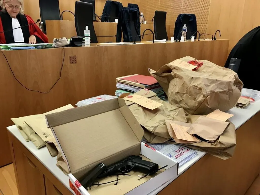 Un homme de 62 ans a été rejugé à Caen, aux assises du Calvados, jeudi 16 et vendredi 17 juin 2022 pour quatre braquages. On voit ici les scellés (pièces à conviction). © Ouest-France