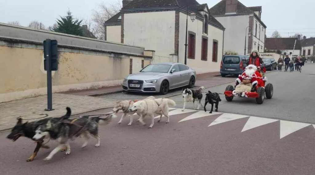 En début d’après-midi, les chanteurs de Bille de clown ont donné un air de fête puis ils ont laissé la place au Père Noël qui a innové en arrivant sur un traîneau tiré par les chiens de Bérengère la musher.