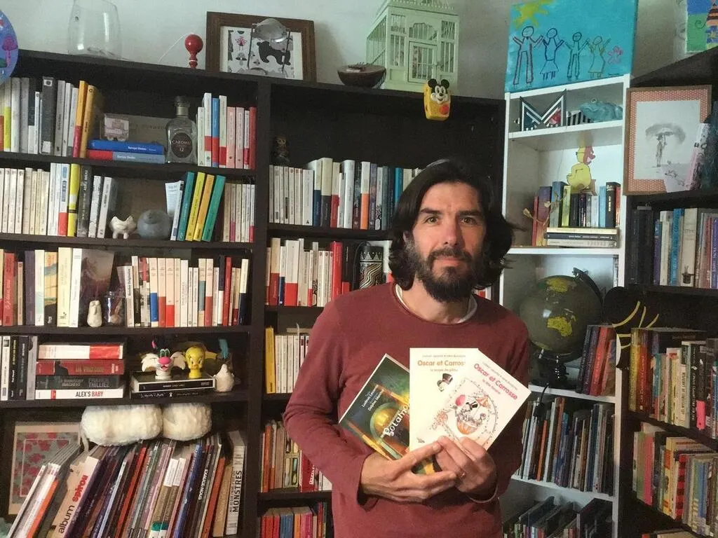 J’étais en charge d’une classe de CM1-CM2 avec des élèves pour qui la lecture était compliquée. Pour certains d’entre eux, les critères de choix d’un livre étaient sa taille, son épaisseur, sa taille d’écriture à l’intérieur et non pas de quoi ça parle. Alors, j’ai eu envie de produire un livre totalement différent sur le fond et sur la forme, de proposer du drôle afin que les enfants puissent le lire avec facilité. Depuis, je ne me suis plus arrêté.