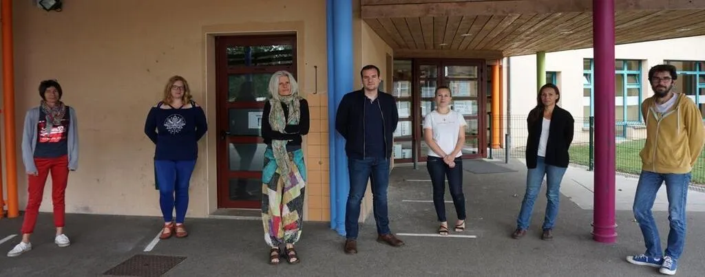 La directrice Nathalie Liger avec Virginie Gouchet, Corinne Piéton, Aurélien Crochard, Manon Pettiot, Sophie Coulais et Ludovic Lecomte. © Ouest-France