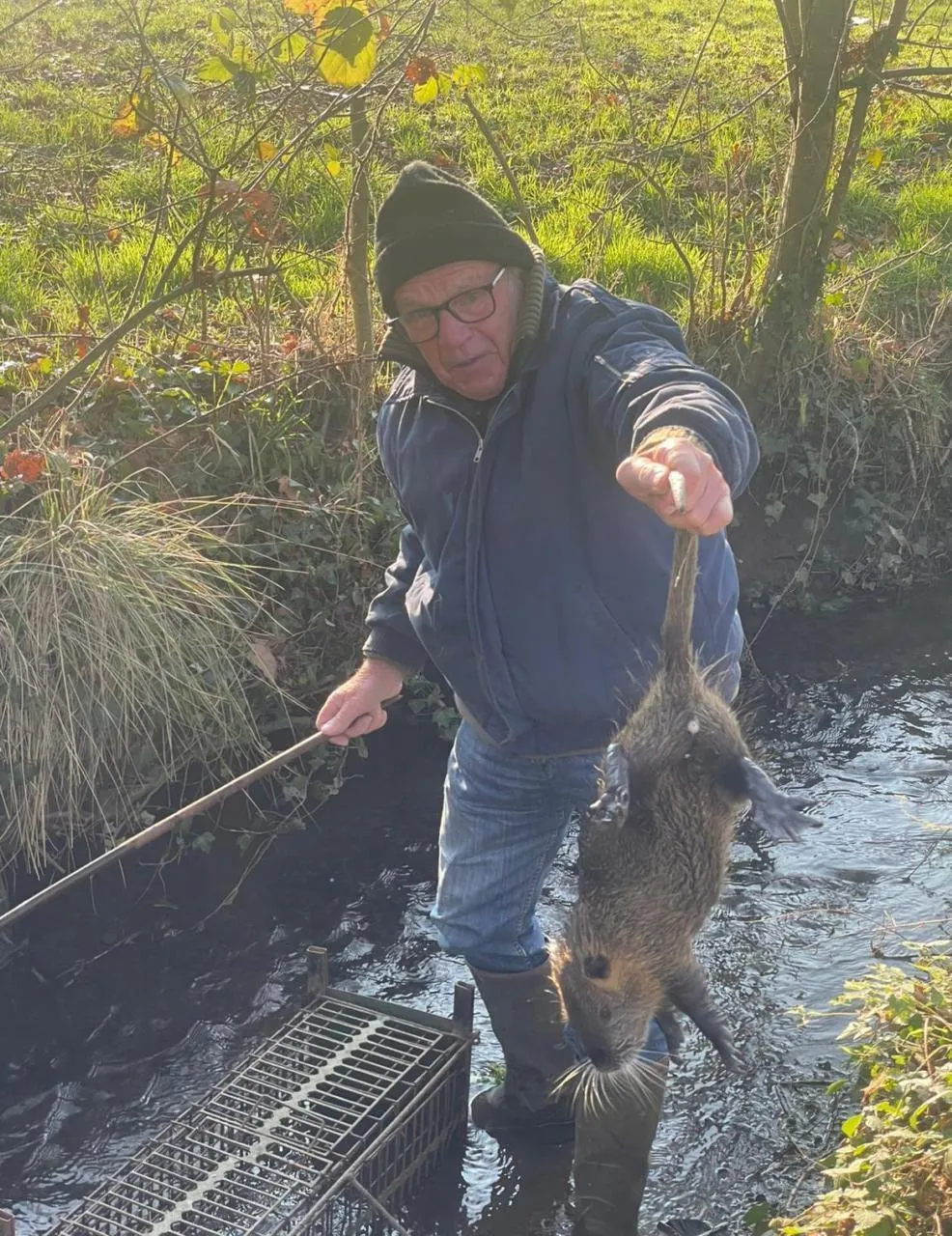 Bernard Hérroult, avec un ragondin piégé en cage. © Ouest-France