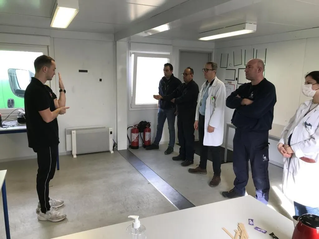 « Je vais vous montrer comment s’échauffer avant votre prise de poste. Ça peut être utile d’apprendre quelques mouvements pour éviter de se blesser », explique Erwan Gallier.