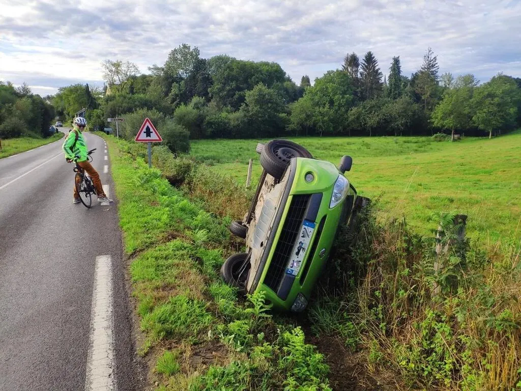 Caligny. Une voiture retournée dans le fossé, le conducteur indemne... |