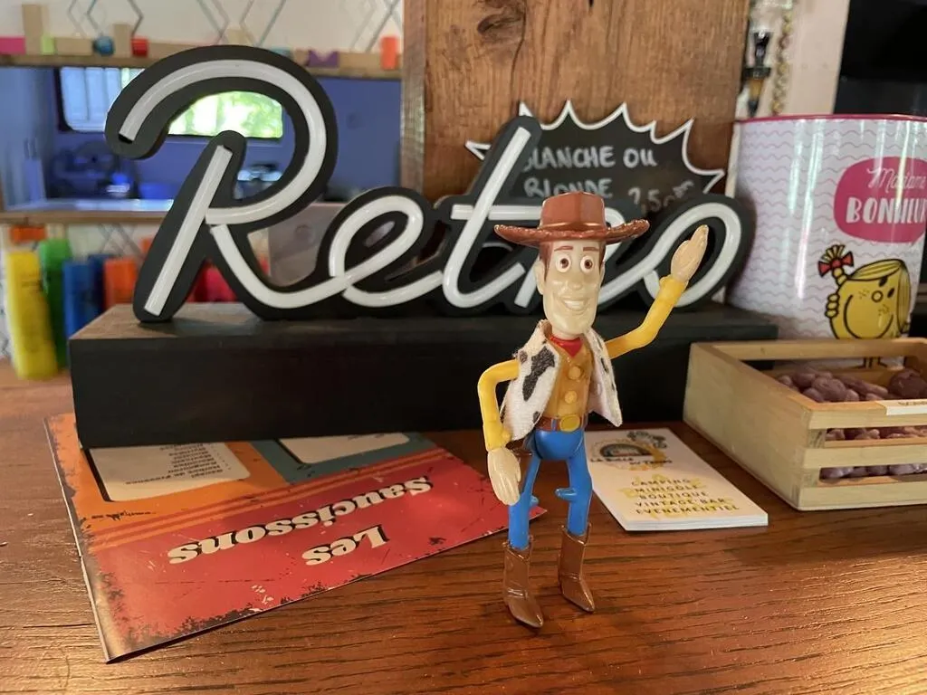 À l’image du style rétro du camping, les deux trentenaires ont ouvert à 50 mètres de la première caravane le « vintage’bar » en novembre. Comme pour les caravanes, « chaque objet a son histoire », décrit Agathe Letheuré, qui a personnalisé les meubles et pensé chaque détail de la décoration ; des 45 tours au mur aux capsules sur le bar à l’épicerie vintage qui propose des produits locaux – pour les campeurs qui auraient faim. « J’aime tout ce qui est ancien. J’ai beaucoup, beaucoup d’idées pour la décoration. » À l’extérieur, tables et canapés prolongent l’esprit du bar et une petite caravane est remplie de jeux anciens pour les enfants.