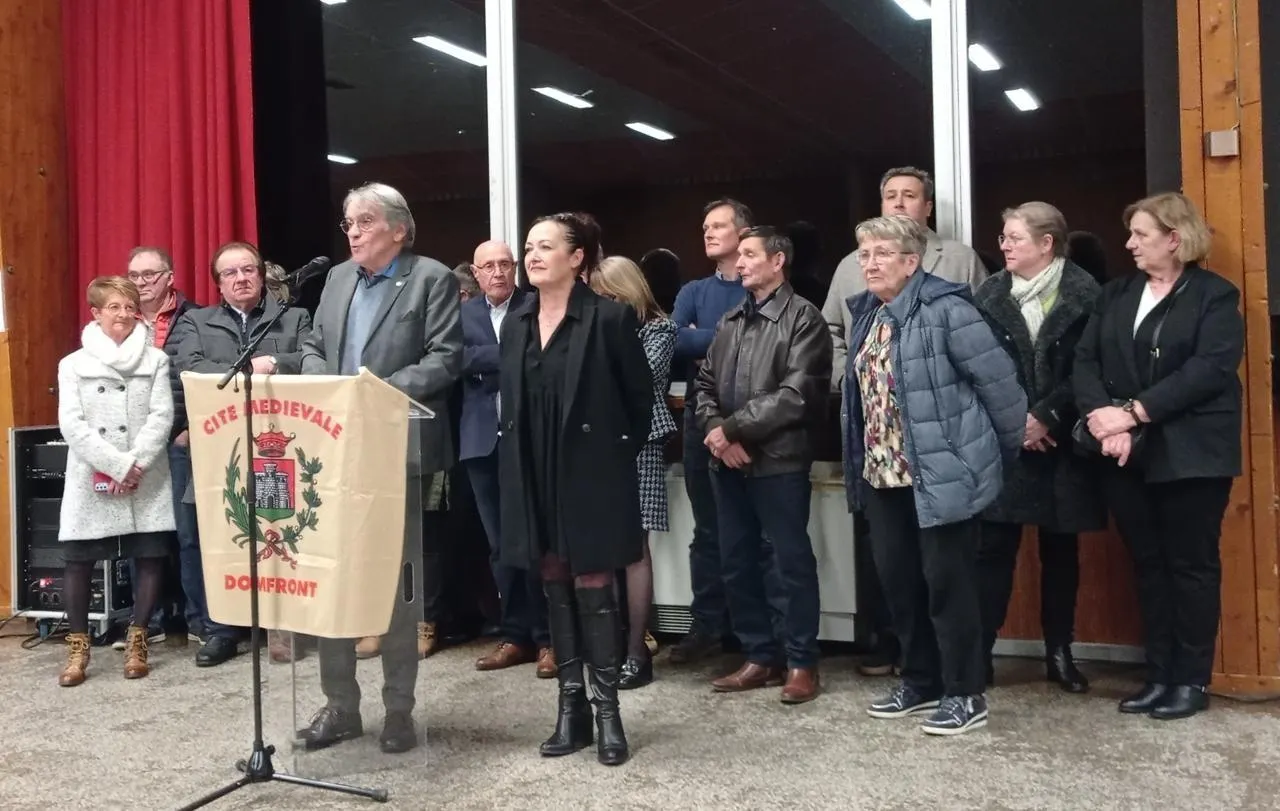 Bernard Soul, le maire de Domfront-en-Poiraie, présentant les vÅ“ux, entouré de Catherine Meunier conseillère départementale et régionale et des membres du conseil municipal. © Ouest-France