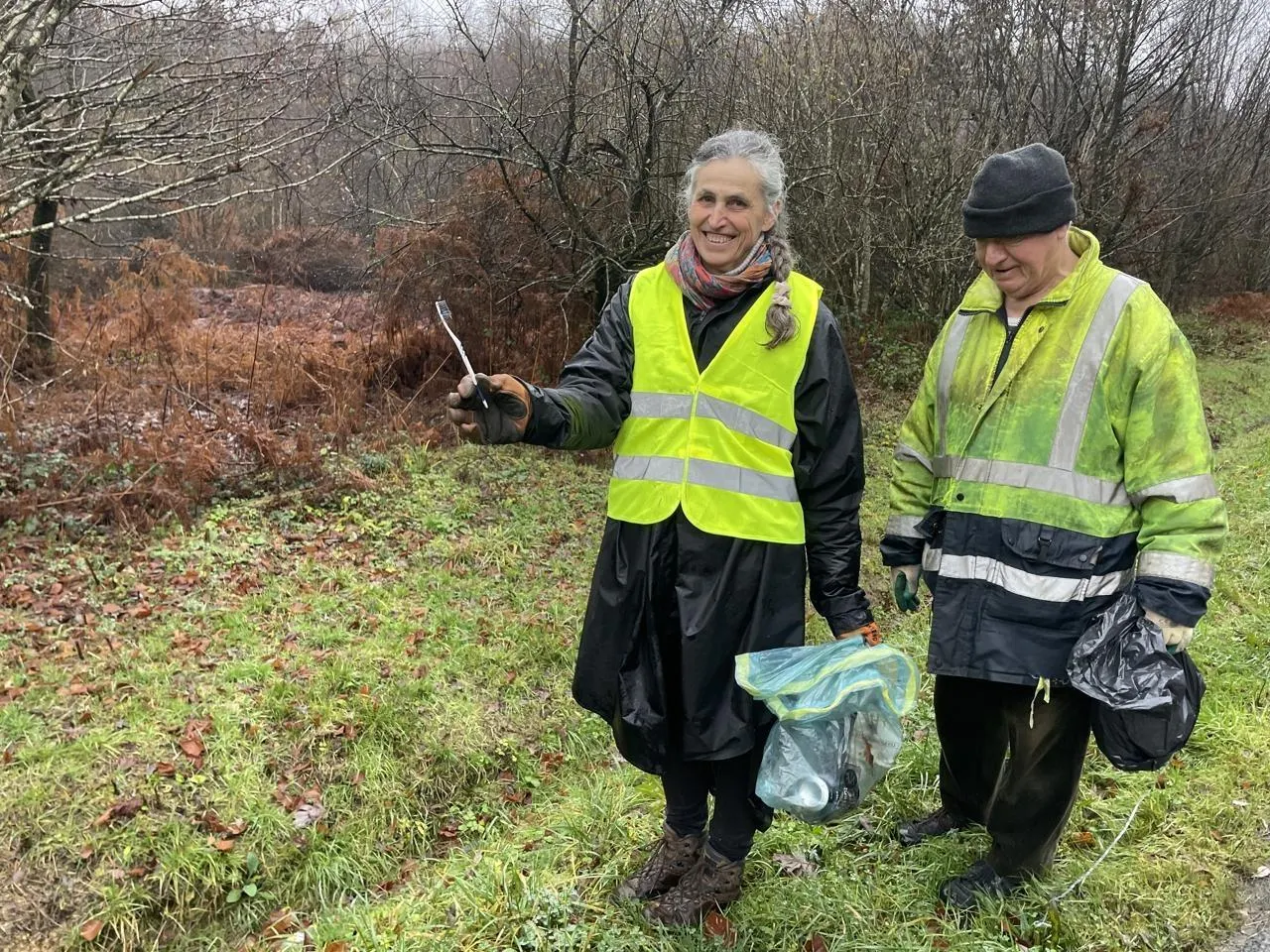 Parmi les déchets ramassés, dimanche 7 décembre 2025 en forêt d’Écouves : une vieille brosse à dents. © Ouest-France