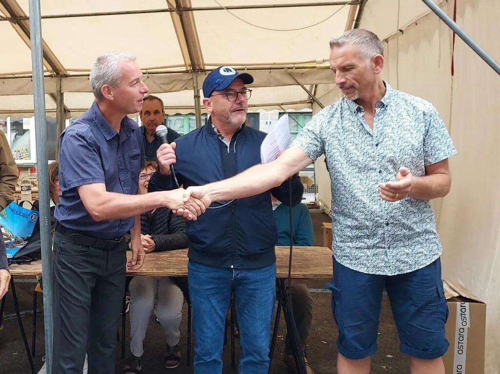 Pascal Olivier (président du comité français) présente son remplaçant Samuel Morineau à Cédric Bolomey (président du comité suisse). Ouest-France