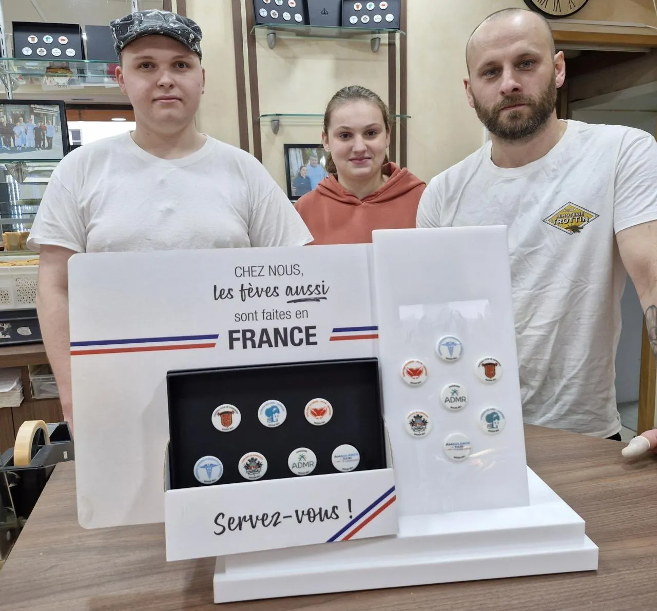 ajoutent les commerçants de la Maison M & J. Leurs fèves personnalisées sont créées et fabriquées en France par la société Panessiel (Isère), premier fabricant de fèves françaises,  un élément primordial quand on sait que 95 % des fèves viennent des pays asiatiques »,