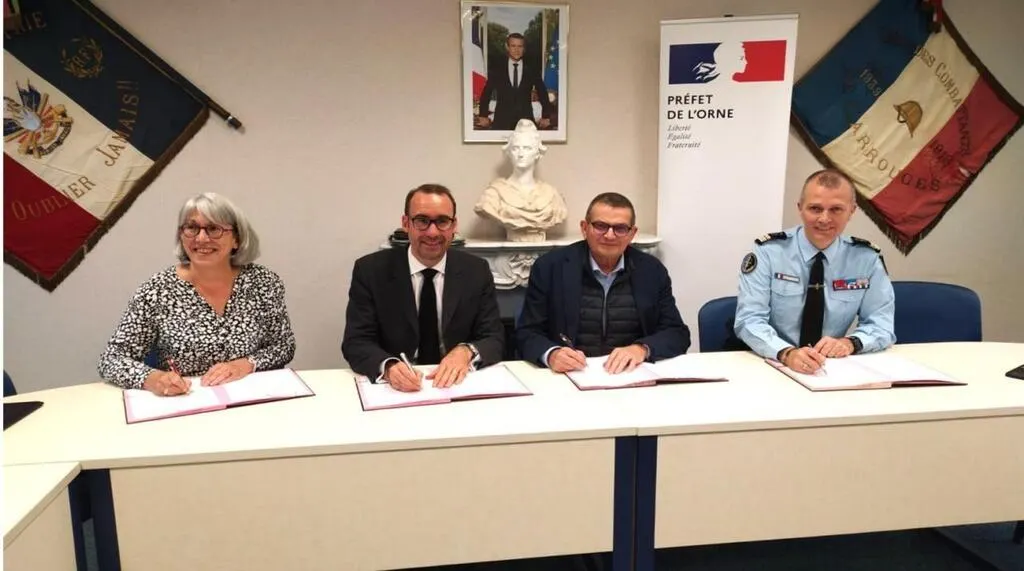 Un avenant à la convention-cadre Petites villes de demain a été signé, mercredi 6 novembre, entre Carrouges, la communauté de communes du Pays fertois et du Bocage carrougien, l’État et le groupement de gendarmerie départementale. Cet avenant inscrit un volet sécurité dans cette convention, marquant ainsi une première dans le département.