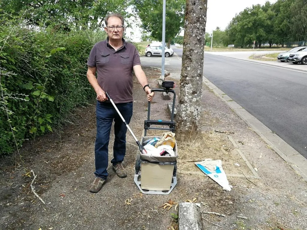 François Gouyon, de Damigny, près d’Alençon (Orne), marche pour sa santé et celle de la planète. Ce patron d’une boîte informatique témoigne de sa prise de conscience et de son action écologique en faveur des jeunes générations : quand il marche, il en profite pour ramasser les déchets.