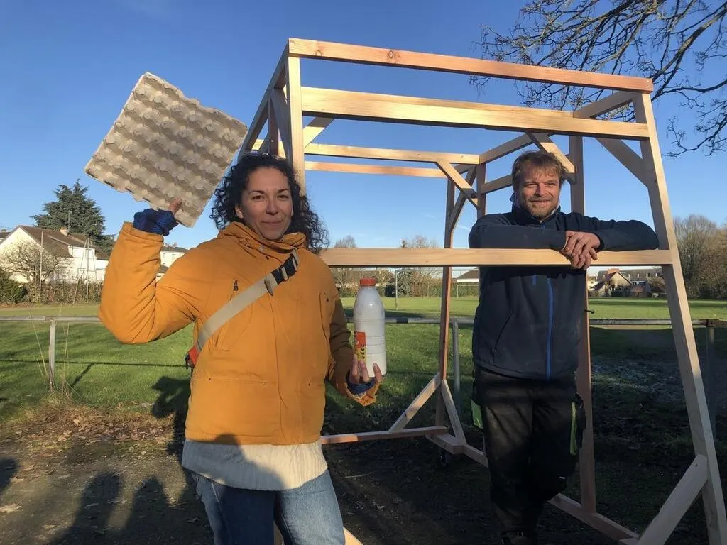 Morgane Barbotin, artiste plasticienne, et Pierre Ronez, qui a fabriqué les structures des wagons de ce futur char. © Ouest-France