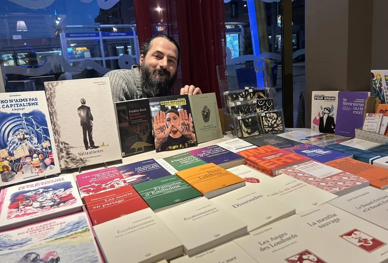 Fondée à Caen en 2019, la maison d’édition indépendante Grevis investit des événements, lieux culturels, manifestations, pour vendre ses ouvrages. Un moyen pour ses fondateurs de diffuser des livres engagés et critique de la société, difficiles à mettre en avant dans les rayons des librairies. Les bénévoles de la maison Grevis sont présents, tous les mercredis, au Café des images, à Hérouville-Saint-Clair (Calvados) pour présenter ces bouquins à la forte dimension politique.