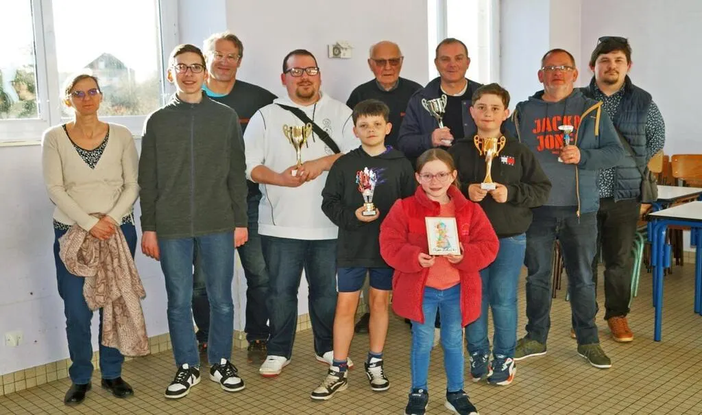Les gagnants du tournoi accompagnés des membres du bureau de Chanu échecs 61. © Ouest-France