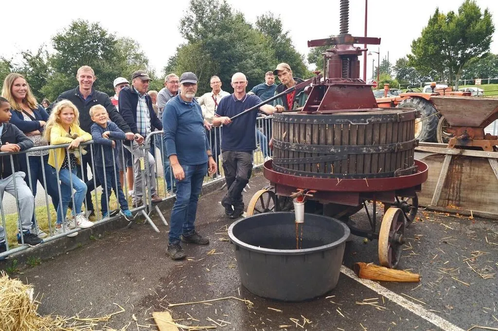 Le pressoir utilisé allait autrefois de village en village, pour fabriquer le pur jusqui était mis en tonneau pour la fermentation. © Ouest-France